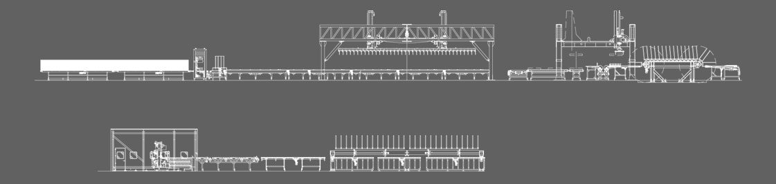 At the end, the panels are managed from a pick’n’place system and a panel tilter to create a stack of panels.